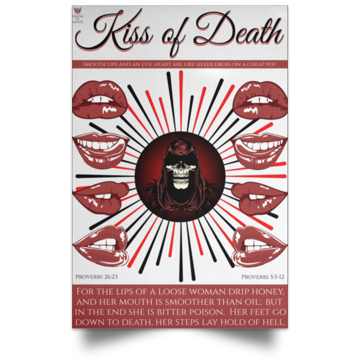 Kiss of Death - White / 12 x 18 is backordered and will ship as soon as it is back in stock.